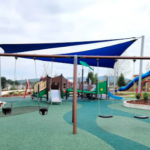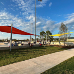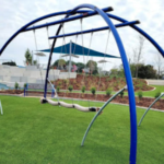 ダブリンパークの奥に位置する遊具エリアです。駐車場は多くないので週末は混んでいます。日よけはありますが椅子が少ないので椅子を持ち込んでいる保護者もいます。
