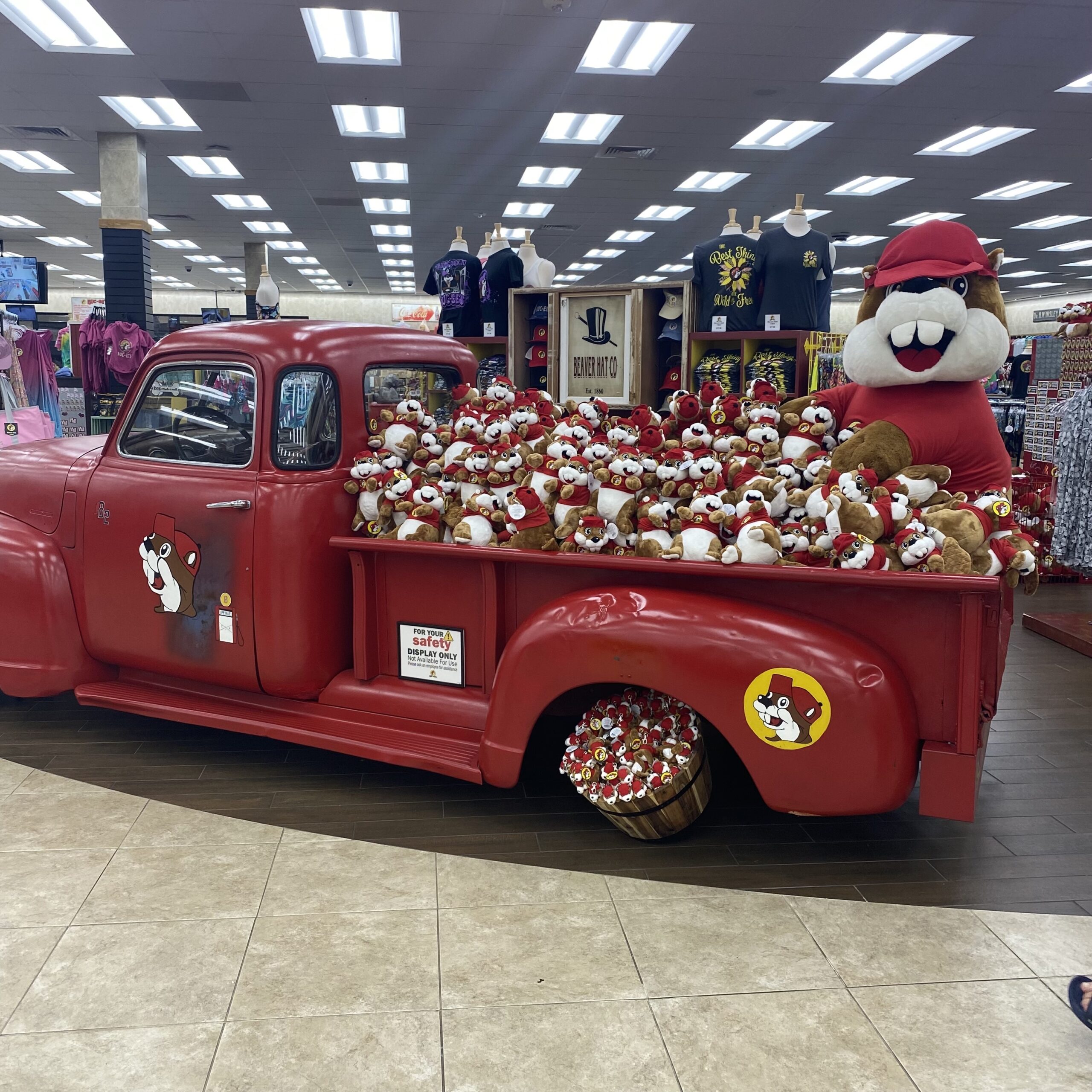 Buc-ee’sの人気マスコットキャラクター、ビーバーのバッキーくんグッズも大人気です。記念にぜひ購入してみてください。