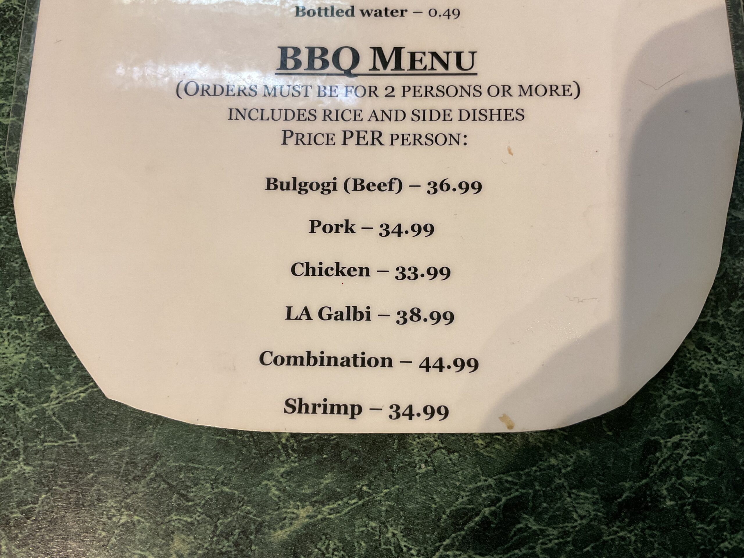 下段右はテーブルで焼ける焼肉メニューになります。二人以上からのオーダーだそうで、お値段は、、お高めでしょうか。
