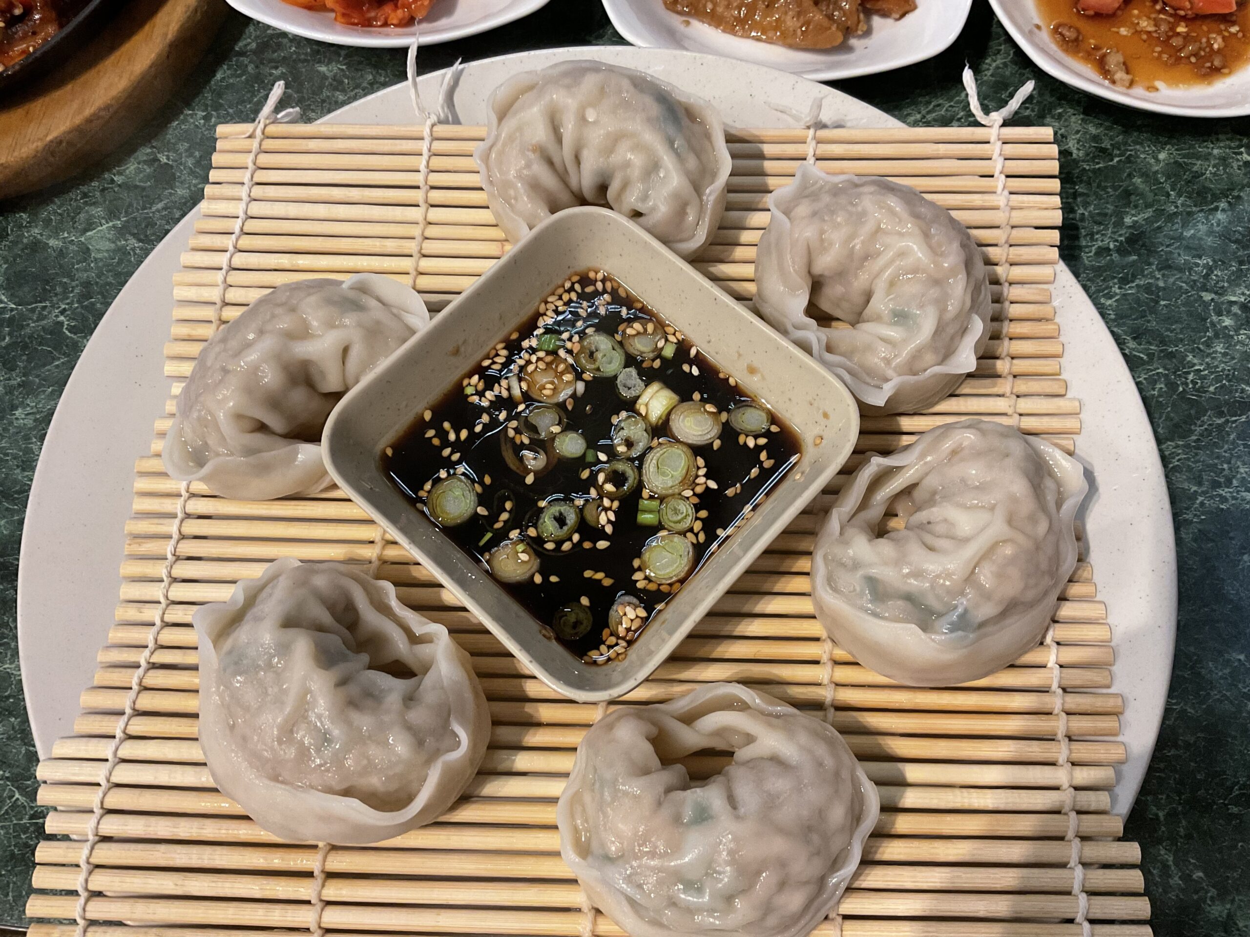 King Man Doo  野菜、牛肉、キムチの3種から選べます。Kingというだけあって一つ一つが大きいです。ソースは少し甘めのポン酢のようでした。