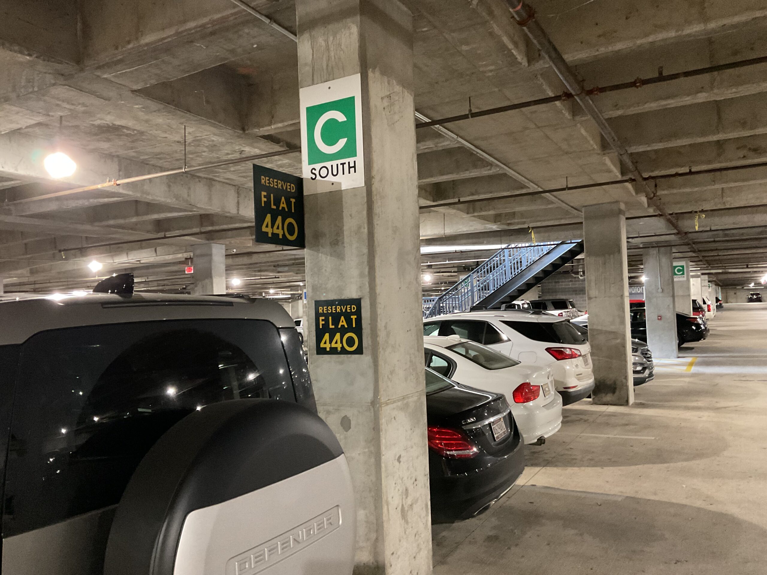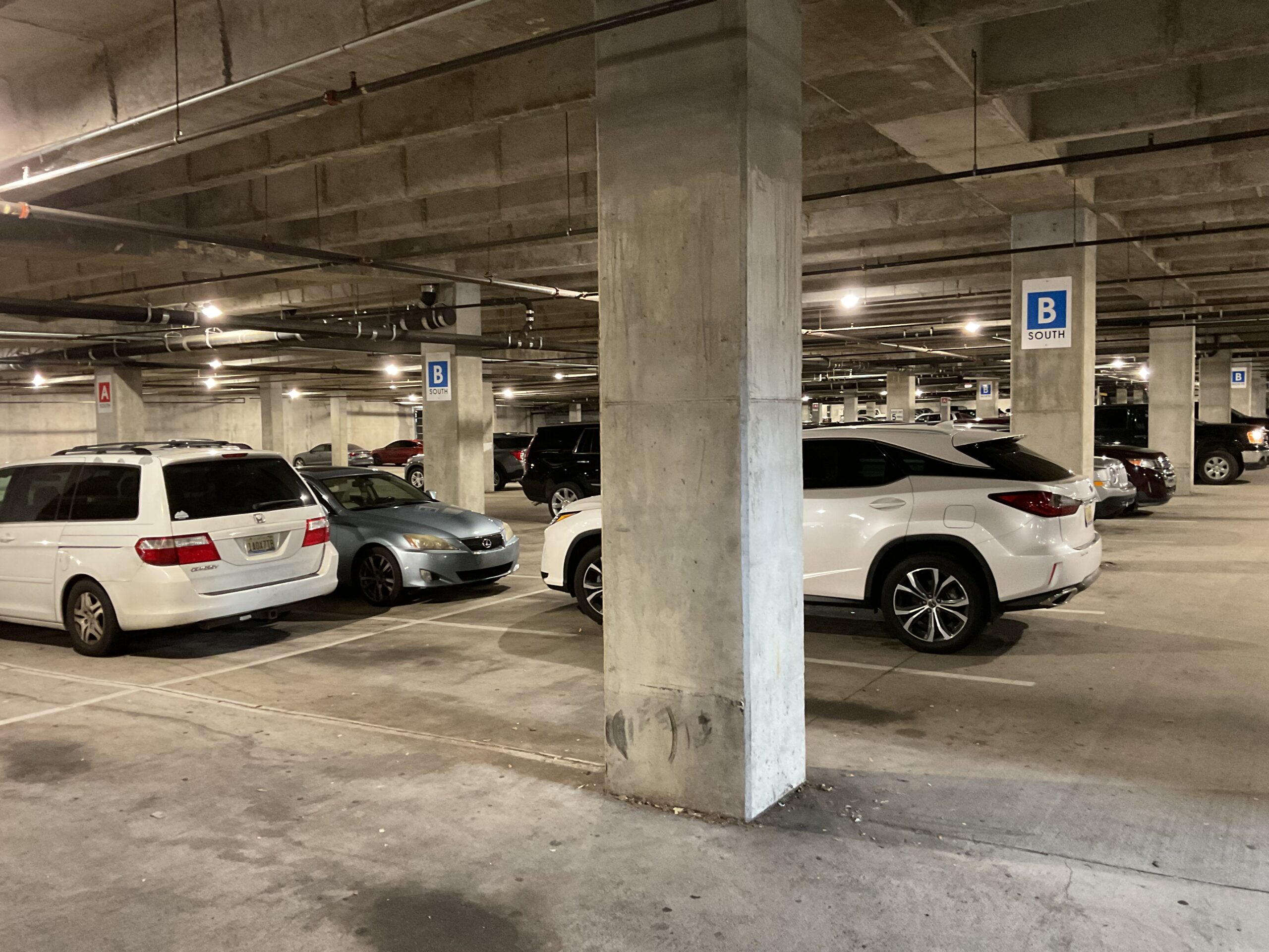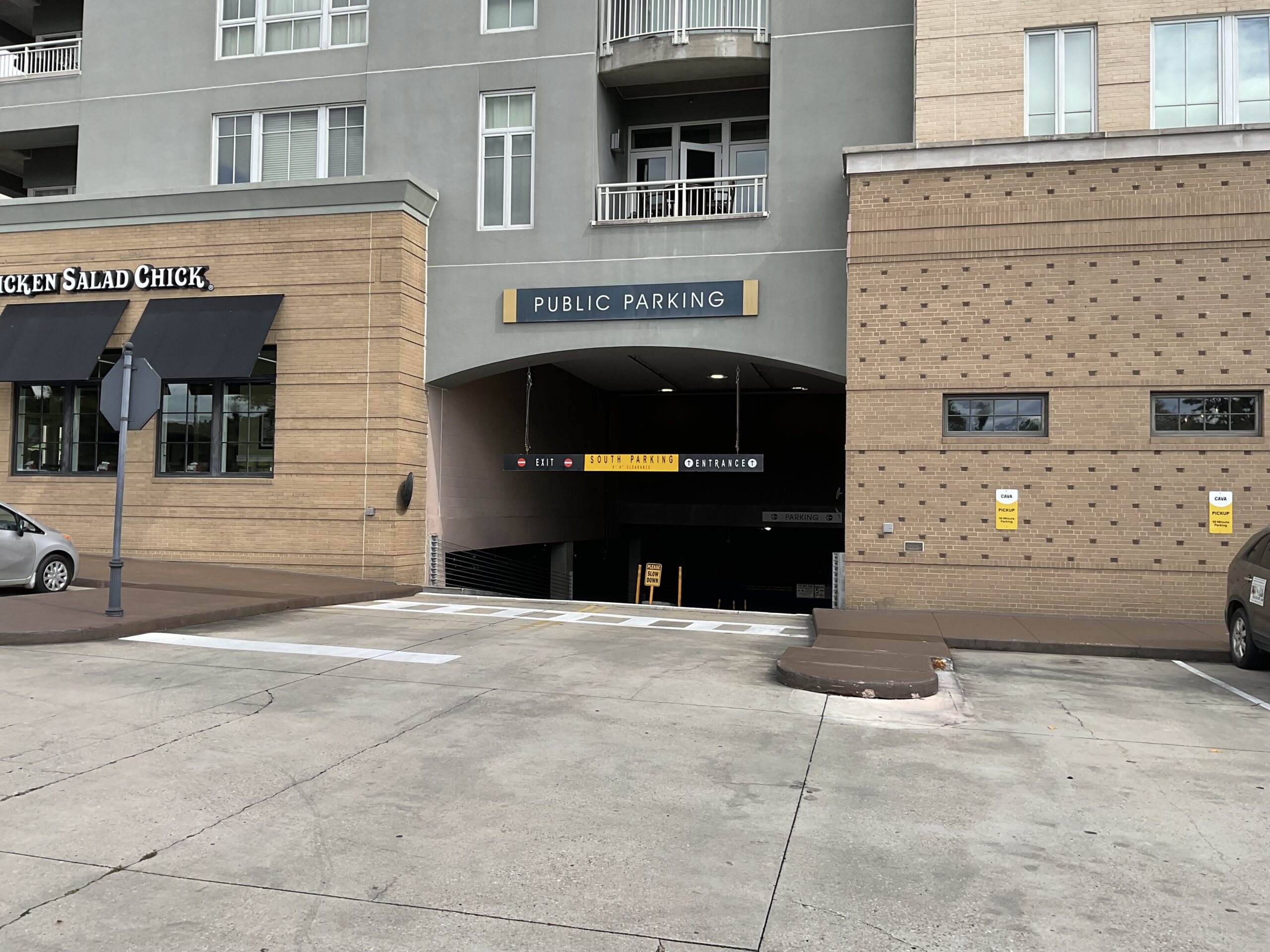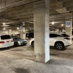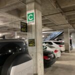 右 Chicken Salad Chickの横に地下駐車場の入り口があります。ここは料金も時間制限もないので気軽に止められます。