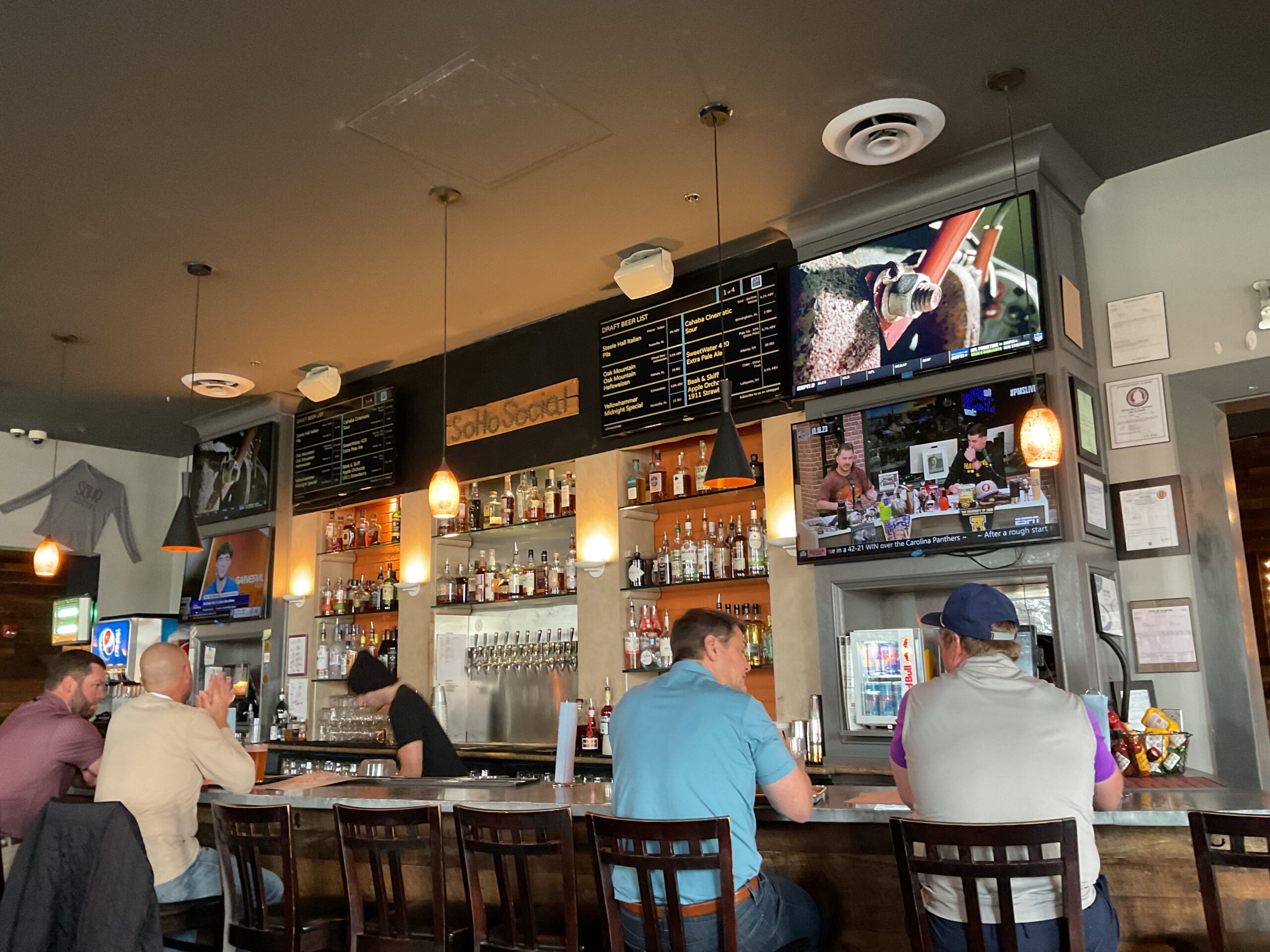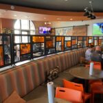 店内は広くバーカウンターもあり、スポーツ中継のTVがたくさんあります。
