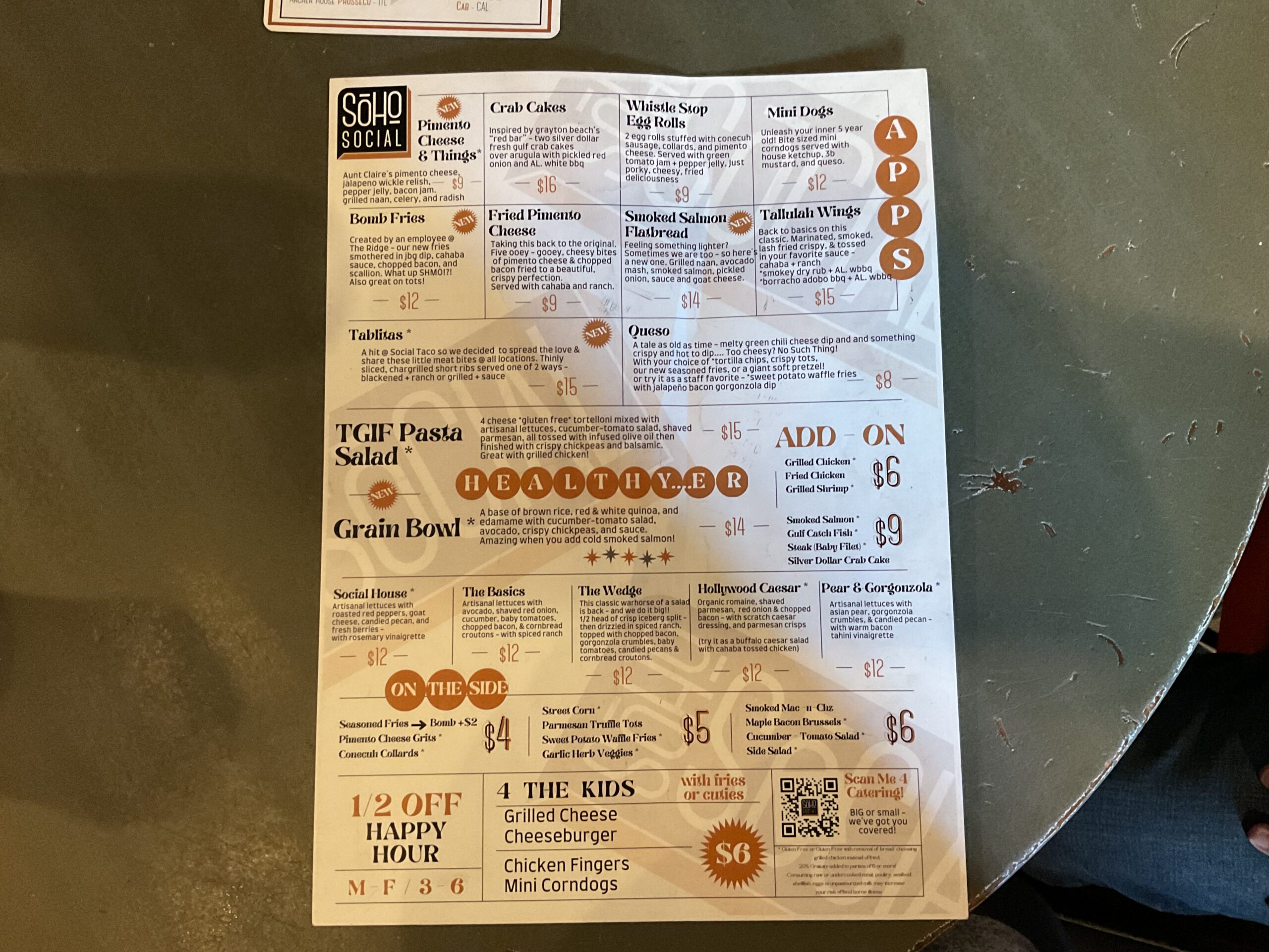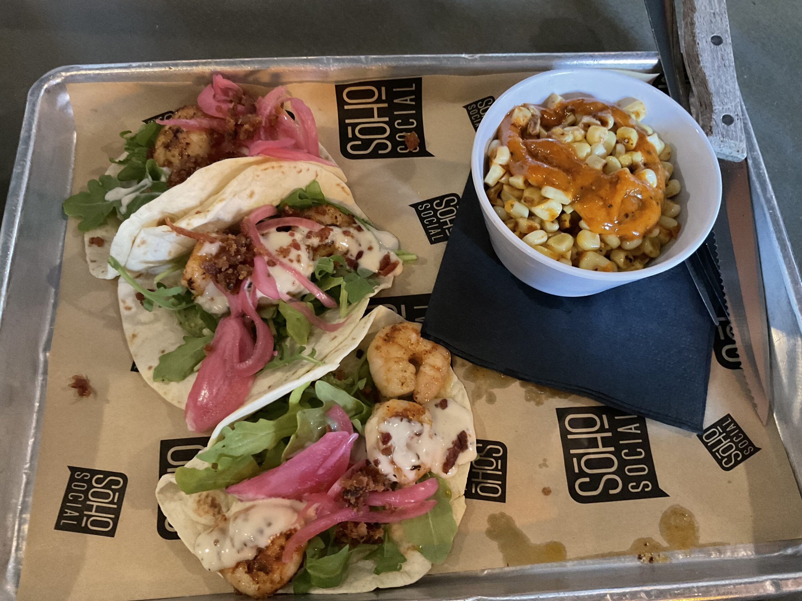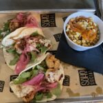 サンドやタコス、バーガー系にはサイドメニューが一つ選べます。定番のフライドポテトからピメントチーズグリッツ(とうもろこしの粉を濃厚なチーズで味付けしたもの)など11種類から選べます。写真のサイドメニュー(小さな白いボール)はストリートコーンと言うもので、シャキシャキとした食感のコーンをスパイシーに味付けしたものです。