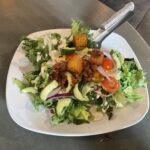 左 ベーシックサラダですが量は多いです。これに好きなプロテイン、チキンや海老など足す事もできます。