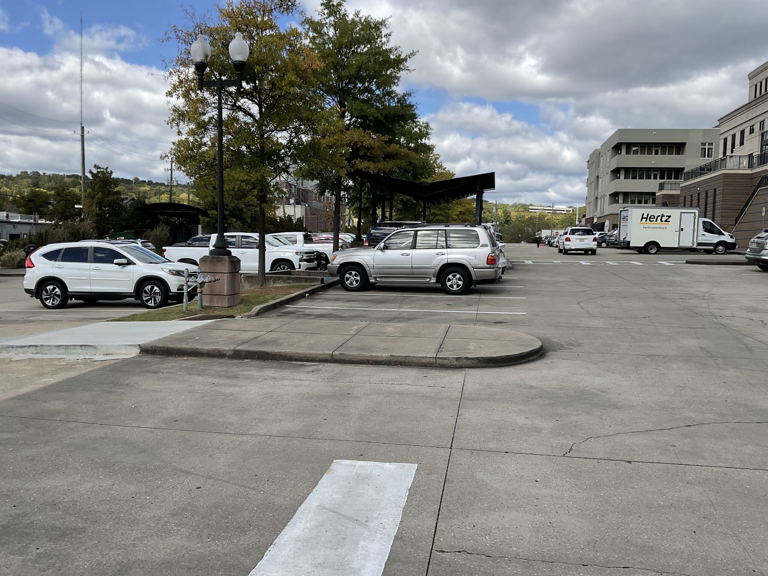 左 City Hallに向かって右サイドに大きな駐車場がありますが、休日やお昼時などはいつもいっぱいです。