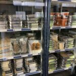 グラタンの様な冷凍の惣菜やパンにスープ、冷蔵のチキンサラダ(ぶどう入りです)やブロッコリーのサラダなどがあり、またスイーツは色が穏やかな(個人の感想です😅)ミニカップケーキなどがありますが種類は少なめです。