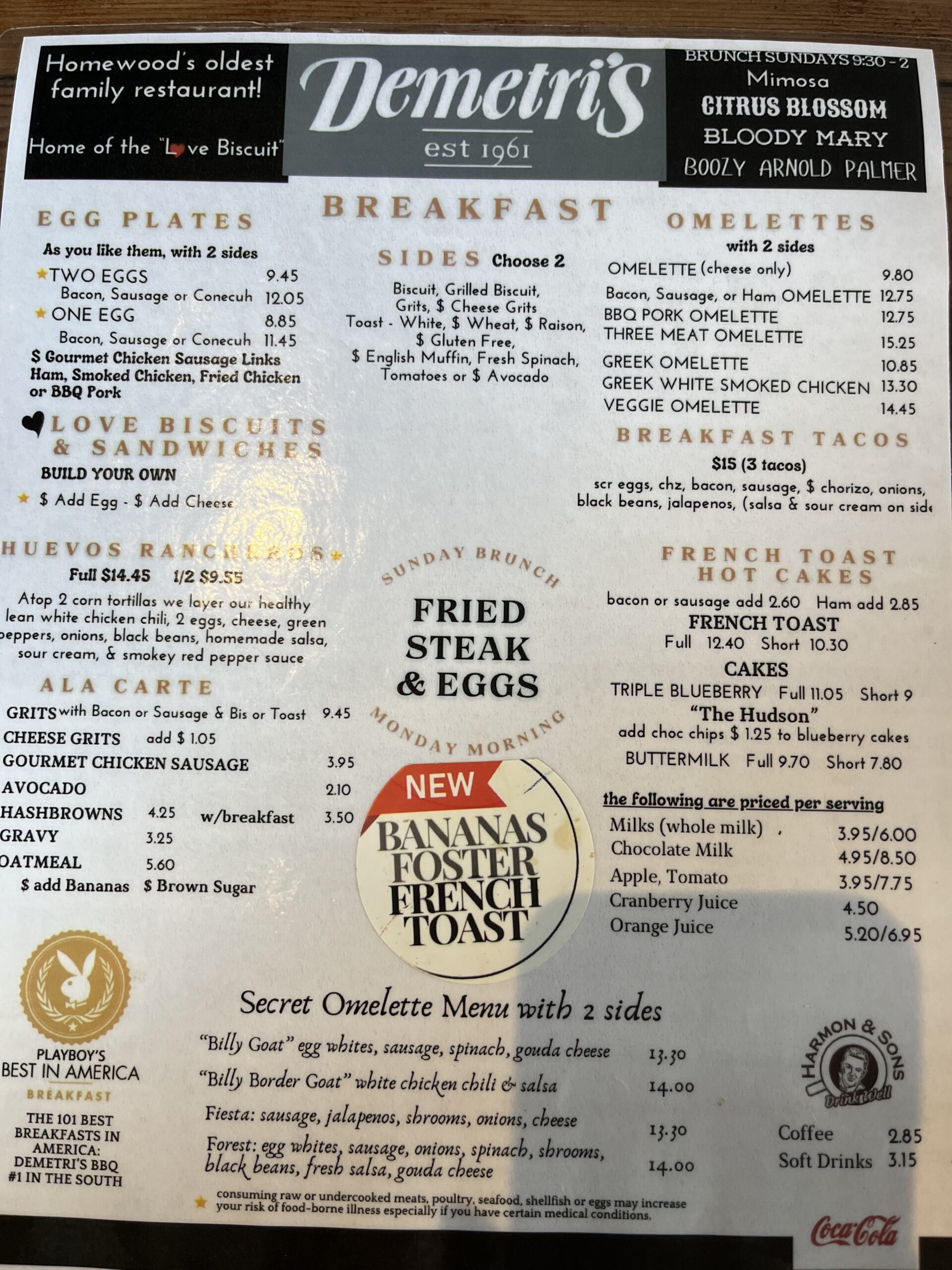 ちなみにアルコール類も開店時から提供があります。ただし、アラバマ州は日曜だけ昼12時以降でなければ提供はありません。