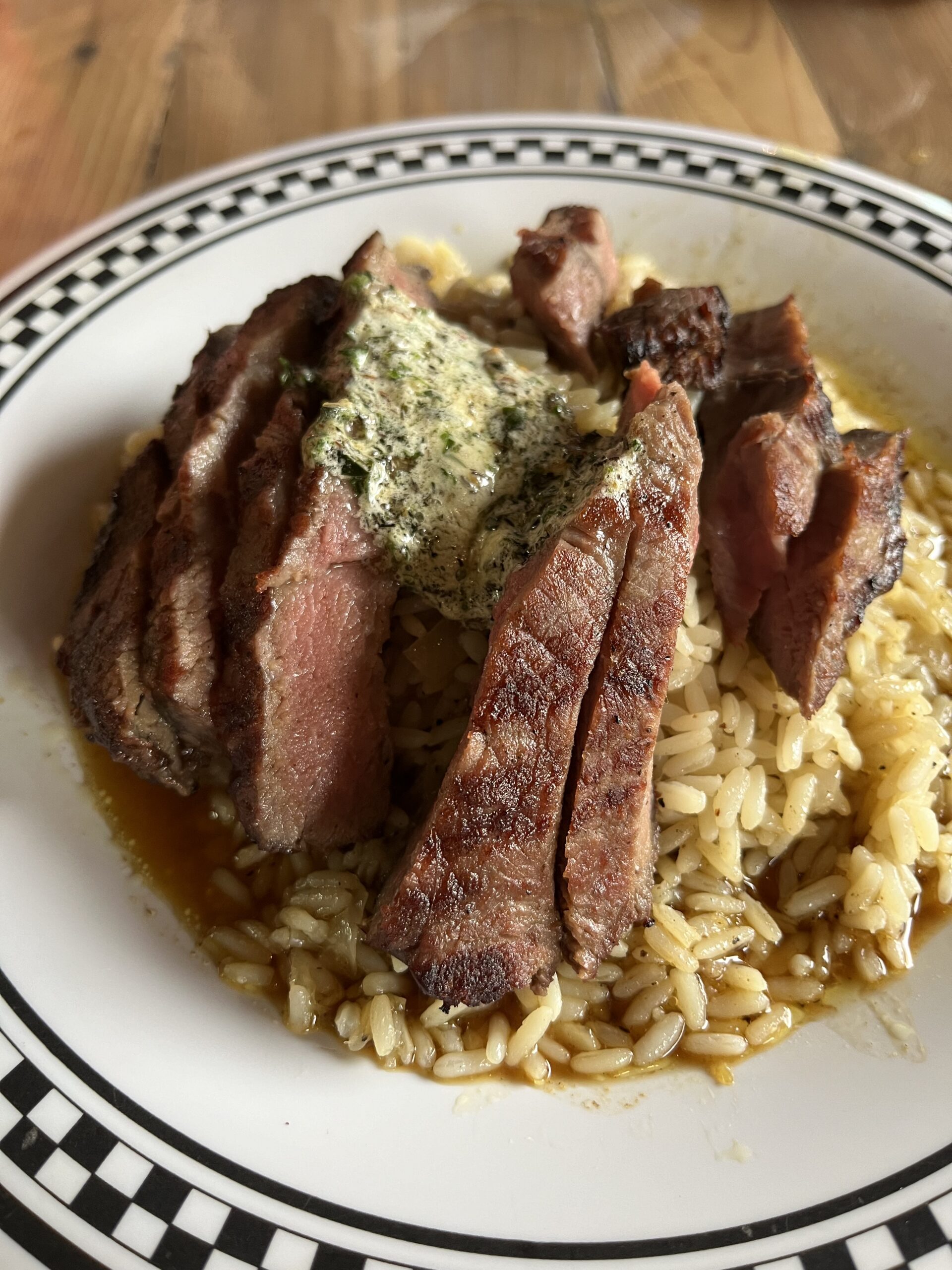 写真左がRibeye Steak Strips over Rice カットされたリブアイステーキをバターライスにのせた物(金曜のランチ)ソースが日本人にも馴染みのあるウスターソースベースで、ステーキの上にはガーリックバターがのっているので、スタミナ食でしょうか?(笑)