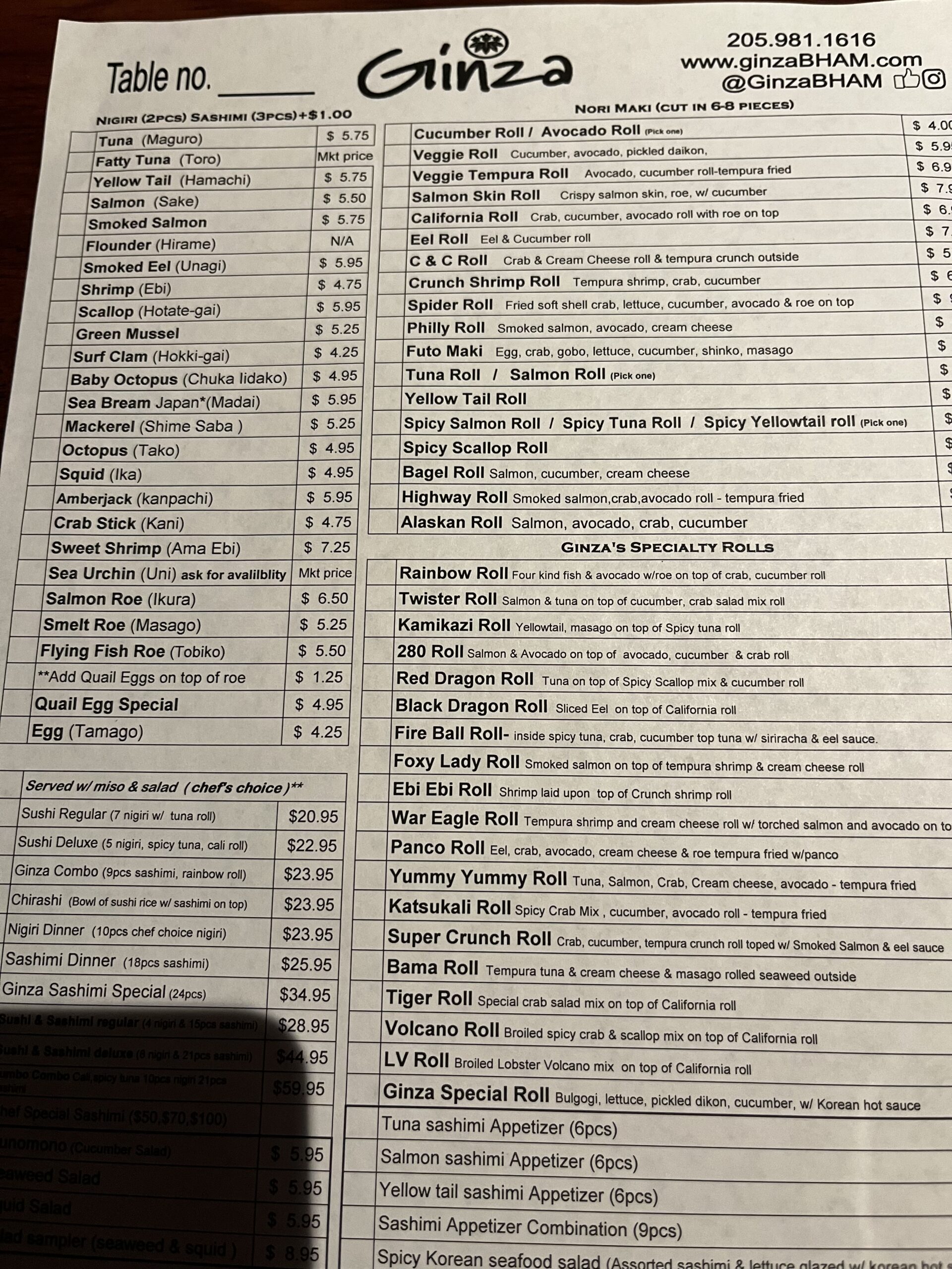 バーミングハムのダウンタウンから車で約30分の所にある、テーブルのグリルで自分で焼く事ができる焼肉があり、またお寿司やお刺身も食べられるレストランです。