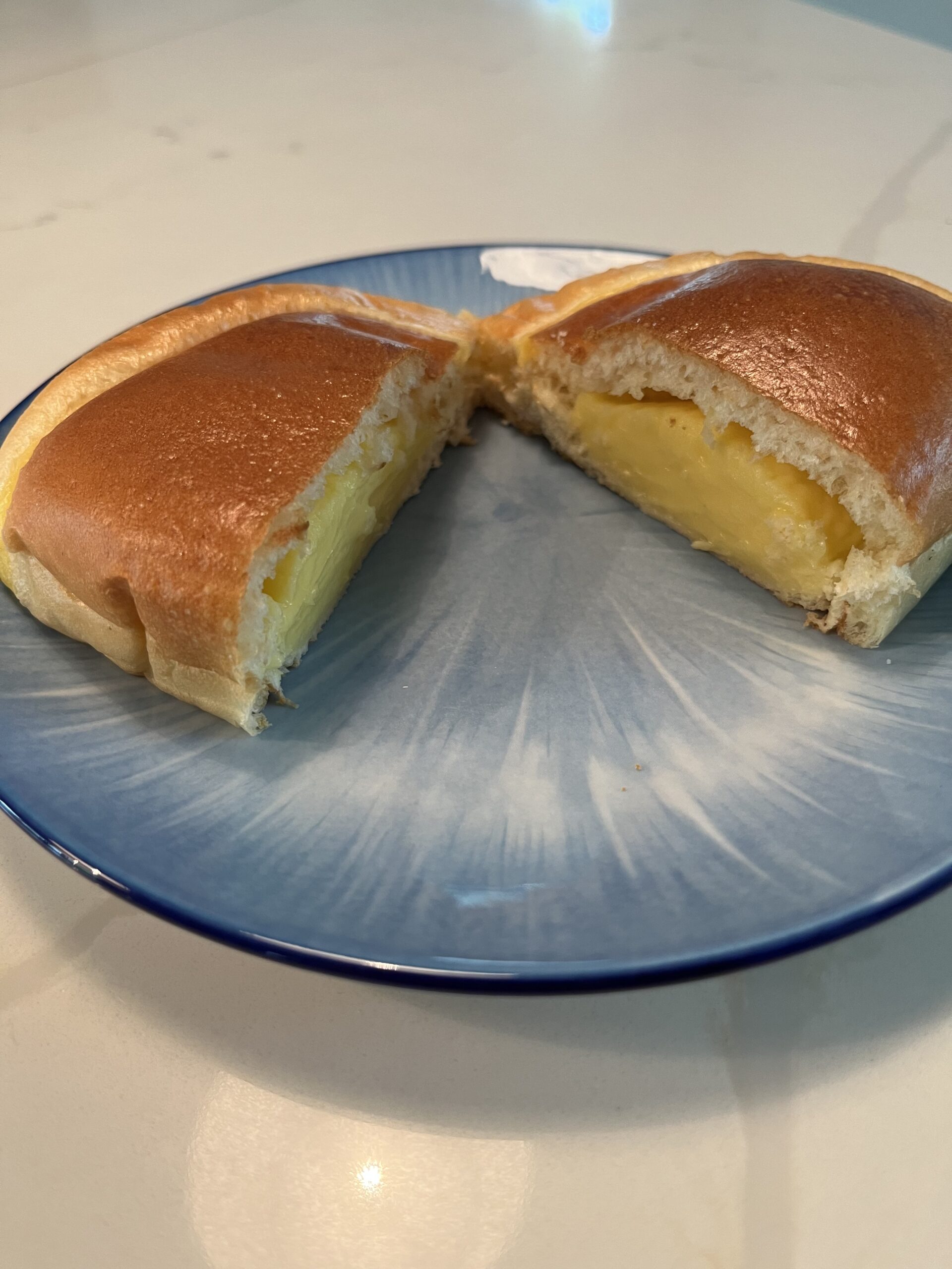 クリームパンは甘さ抑えめのカスタードクリームがたっぷり入っていました。