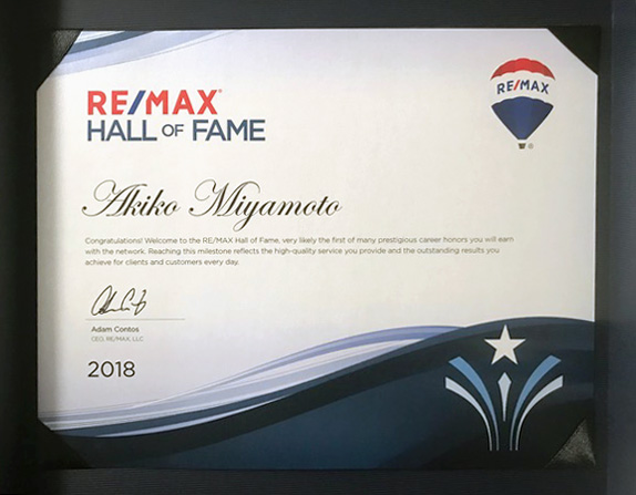 2018年 リーマックスHall of Fame賞、受賞。