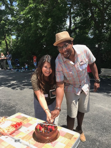 最近結婚したお二人のケーキ入刀で一同お祝いもしました。楽しいひと時をありがとうございます!子供達は水鉄砲で時間を忘れて遊んでいましたよ。