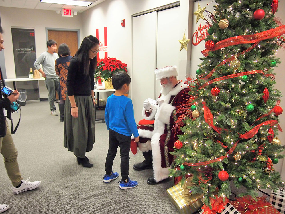 We had a Christmas party with Santa in our new office. Children enjoyed taking photos with Santa, and adults enjoyed drinking and talking. It was over before we knew it!