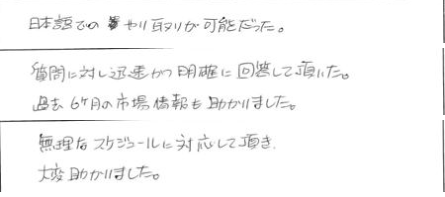 3月18日査定結果が戻り、2つめの条件である査定額が契約額と同等かそれ以上であることをクリア。最後高木さんの方に銀行から求められている書類の提出が終了し、3つめの条件であるローンがおりるをクリアすると無事クロージング。今回はリロケーションの会社が絡んでいる為に、クロージングの48時間前にHUD-1と呼ばれる不動産売買、登記に関わるSettlement Statement(精算/計算報告書)が銀行より提出される必要があります。ここで少し躓きがありました。頭金の支払に高木さんは日本の銀行口座にあるお金をこちらの銀行に送金して利用しました。ただ、送金が本人名義の口座間でのやり取りではなく、日本にいる息子さんが高木さん名義の口座から預金を引き出し、コロンバスの高木さんの銀行口座に送金したことで、頭金が高木さんの自身の資金であるという証明が途絶えてしまった訳です。クロージングが26日(水)、提出期限が24日(火)このやりとりをしていたのが21日(金);汗。たまたま、息子さんだったので姓が同じということで、息子からの「ギフトマネー」このお金を返済することは要求しません。という証書を日本の息子さんに署名してもらいながら、預金口座のある日本の銀行にも英語の預金証明書に印鑑を押してもらってこちらに月曜日の朝一番で返信してもらうことでなんとか対応。後日、高木さんのお話では日本にいる息子さんはこの銀行とのやり取りの為に1日お仕事にならなかったそうです。(お疲れさまでした..)