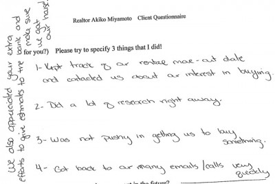 We also appreciated your extra efforts to give estimates to the bank and make sure we got our house!