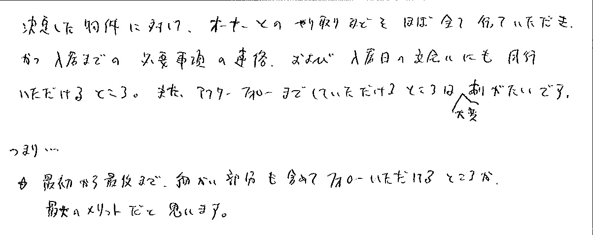 実際に仲介を頼んでどんなところが気に入りましたか?