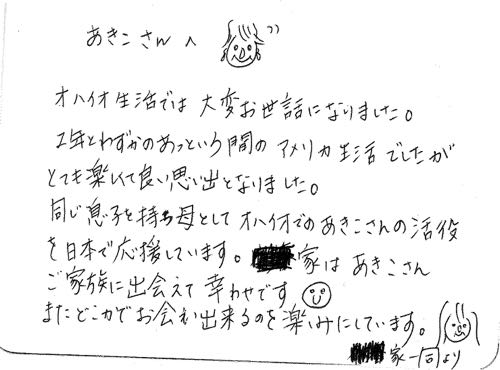 2年後の2015年暮れに本帰国が決まられました。頂いたカードです。日本でもお元気で!またお会い出来る日を楽しみにしています。