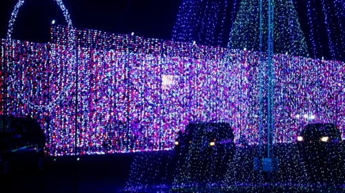インディアナ州フェアグラウンドで開催される、100万個以上のLEDが音楽とシンクロする人気ドライブスルー型イルミネーション。車に乗ったまま楽しめるので、寒い冬でも家族みんなが快適に過ごせます。