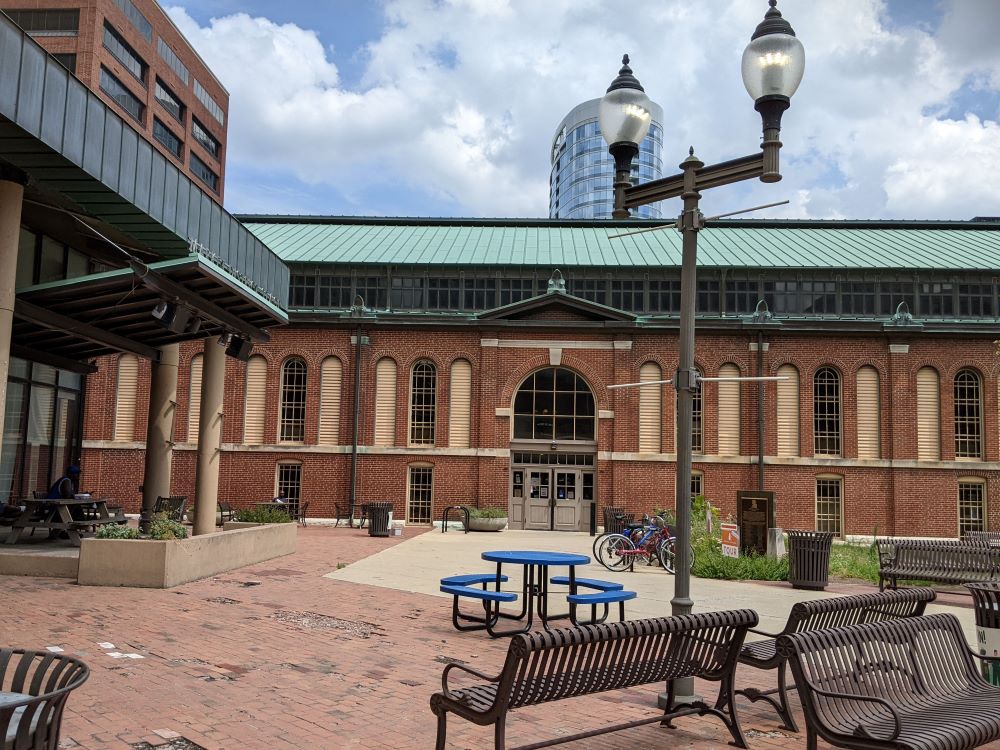 古くからある伝統的な建物を改造して、フードコートを展開しています。雑貨屋さんも少し入っています。いろいろな食べ物屋さんが入っているので、見ているだけでも楽しいです。5月から10月の間の毎週水曜日はファーマーズマーケットも開かれています。新鮮な野菜や果物が手に入ります。駐車場も建物の前にたくさんあり、探すのに困ることはほとんど無いのも嬉しいです。