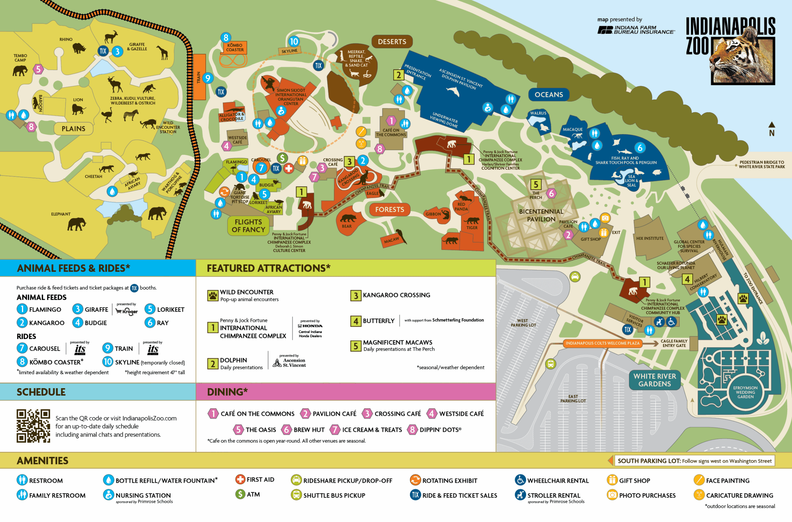 インディアナポリス動物園は、ダウンタウン西側のWhite River State Park内にある人気スポットです。動物園だけでなく、水族館や植物園も併設されているため、1日たっぷり楽しめます。ファミリーや友達とのお出掛けに最適で、ドルフィンショーはプール型シアターとなっており、迫力満点です。サファリ風エリアはアフリカのサバンナを再現。植物園もあり四季折々の花を楽しめます。また、ZooBooというお子様や家族に大人気のハロウィンイベントもあり、動物たちにも特別な「パンプキンおやつ」があり秋を感じるイベントです。