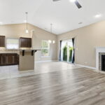 天井が高く開放的なリビングに暖炉を備えた、築浅の快適な一戸建て住宅です。オープンフロアのLDKにはアイランド付きのキッチンがあります。主寝室にはウォークインクローゼット、バスルームにはタイル貼りのシャワーが完備されています。床はリビングやキッチンがタイルやフローリング、寝室はカーペットと機能性も高く、屋外にはBBQやくつろぎに最適なパティオも付いています。また、共有施設としてプールやクラブハウス、散歩道、バレーボールコート、サッカー場なども利用でき、外構のメンテナンスや芝刈りはコミュニティによって管理されるため、居住者にとって非常に住みやすい環境が整っています。