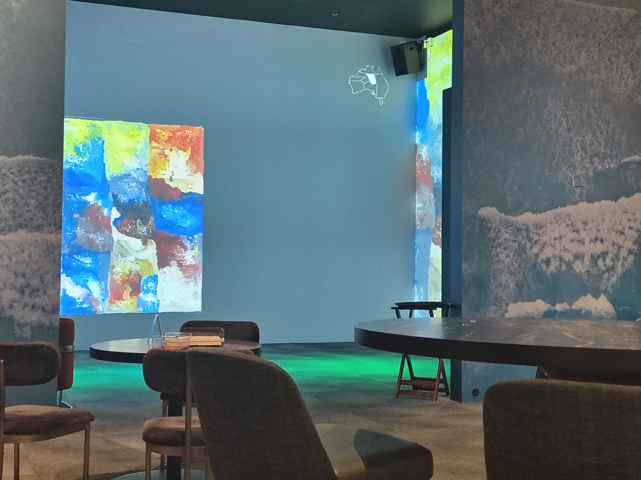 この展示は、オーストラリア先住民の世界観「Country(カントリー)」──すべての生命がつながっているという思想をテーマに、アートと音楽が融合した没入型の体験です。