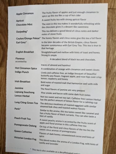 ウエストラフィエットにある小さなホテルの中のレストランで不定期に開催されるアフタヌーンティーです。予約開始とともにすぐに満席になり、中々予約が取れないほど大人気です。紅茶の種類も豊富で、定番のスコーンやサンドイッチ、一口でサイズのケーキなどでお腹いっぱいになります。少しドレスアップして外出したい時にはうってつけの場所です。