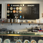 アイスクリームは常時10種類前後のフレーバーがあり(5.45ドル〜)、カップで用意がされてあるので、その場で食べるのもお持ち帰りにも最適。(コーンカップを選択することも可能。)明るく綺麗な店内で、アイスクリームだけでなくコーヒーやキッシュなども楽しめるので、カフェ利用にも良いですね。一番奥には広く使える席もあり、多めの人数で会議をしながらや、わいわいと懇親会のようにも使えそうです。また、子供用の小さなテーブル&チェアがあったり、自由に遊んでも良いおもちゃも沢山置いてあったりするので、子連れでカフェタイムをするのにも選びやすそうです。私はバニラアイスクリームを頂きましたが、とても味わい深く美味しかったです。また違うフレーバーも試してみようと思います。最初にもお話しした通り、その場でスクープしてもらうのではなく、予めカップで販売しているので(アメリカのアイスクリームショップでは珍しい?)、これを何個、これを何個、と選びやすく、手土産や差し入れとして大量ゲットして、楽しいアイスクリームタイムをシェアするのも良いですね!