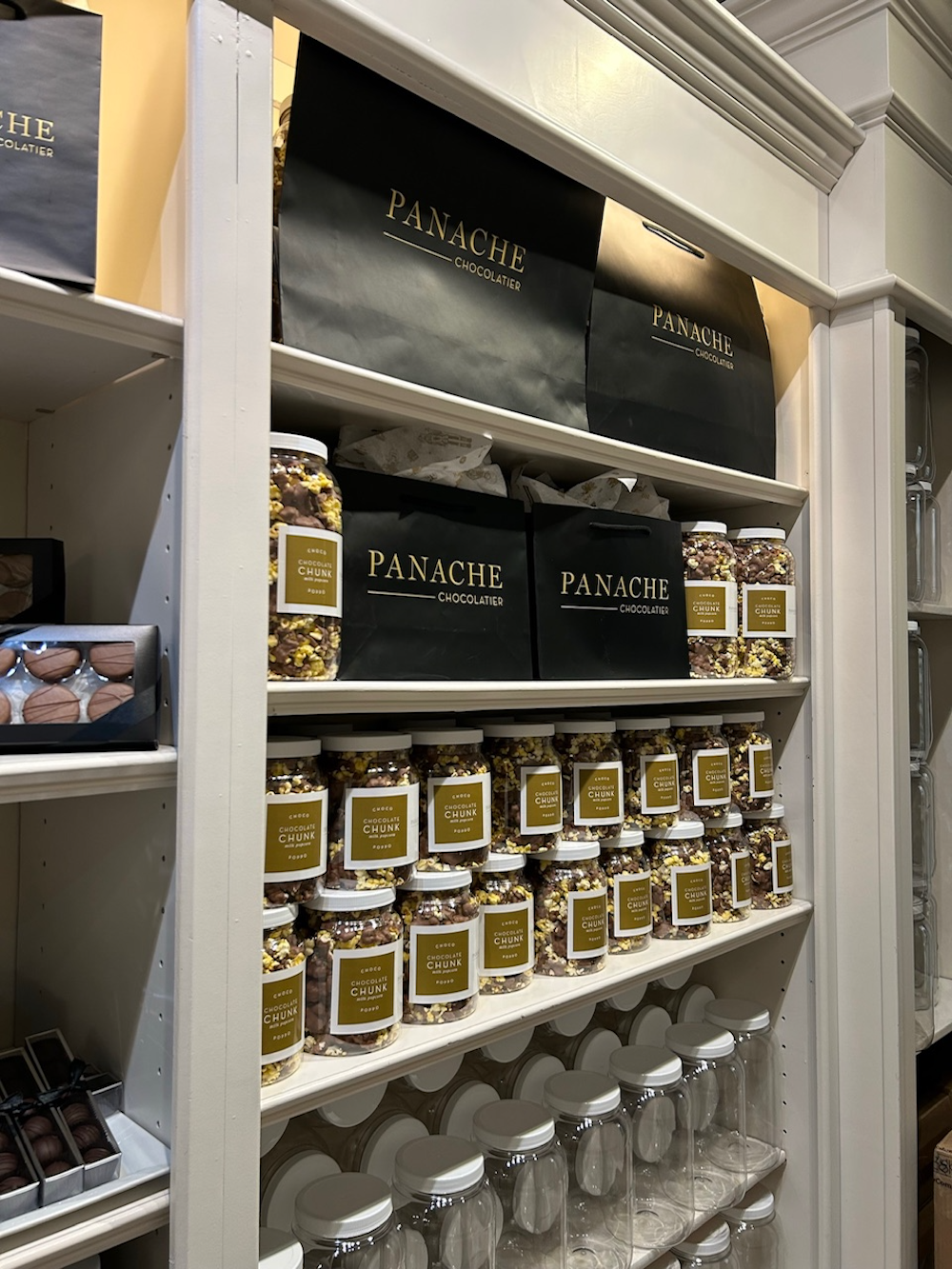 フランスへ来たかのような気分になるお洒落な店構えのこちらは、地元で長く愛されているチョコレート屋さんです。店内に入ると、綺麗なチョコレートがずらりと並んでおり、それを見ているだけでもわくわく幸せな気持ちになります。種類も豊富で、ガナッシュ系、ソルト系、お酒系など、好みに合わせて選べます。チョコレートに加えて、チョコがけのポップコーンやフレークも、お店の人気定番商品です。寒い季節になると、なんだかチョコレートが食べたくなりますよね。自宅でリッチなティータイムをするのはいかがでしょうか。小粋なギフトに選ぶのも良いですね。チョコレートを使ったドリンクメニューも美味しいですよ。お散歩やドライブのお供にするのも良いですね。