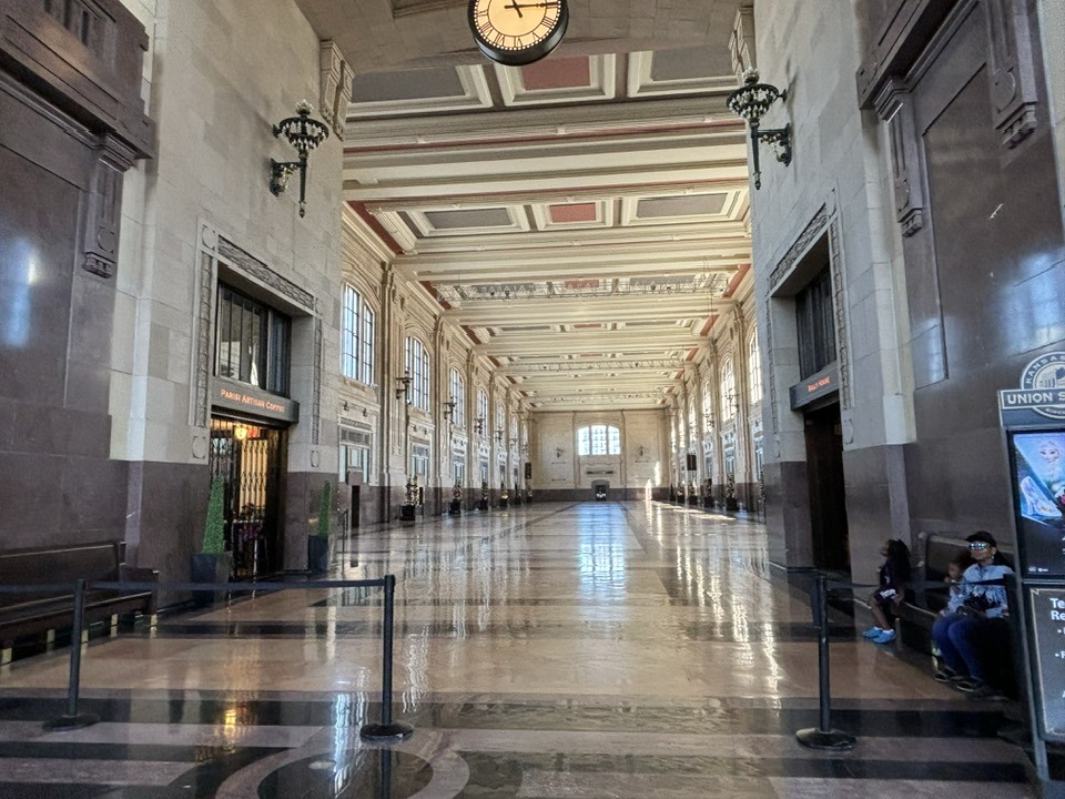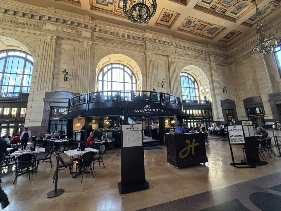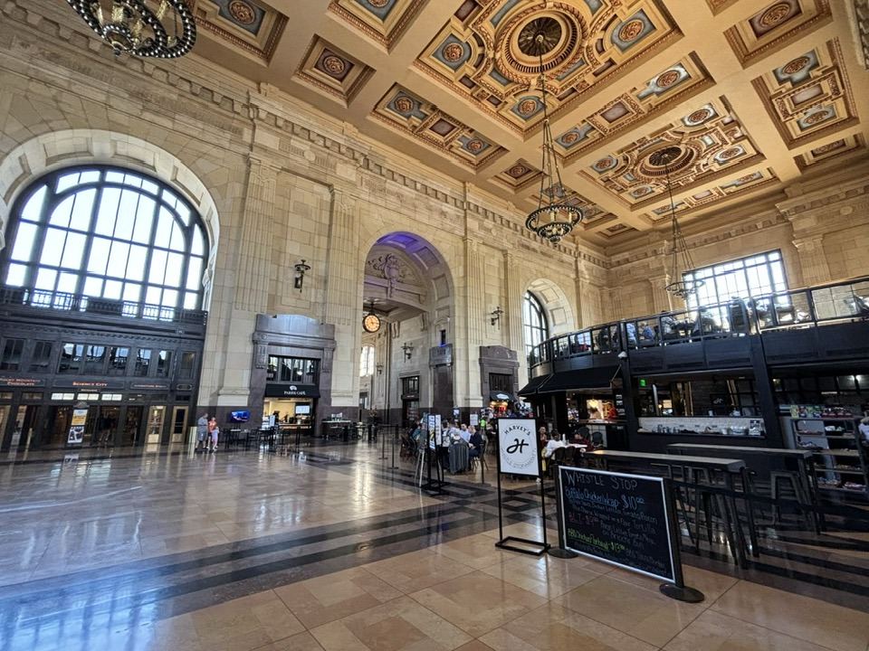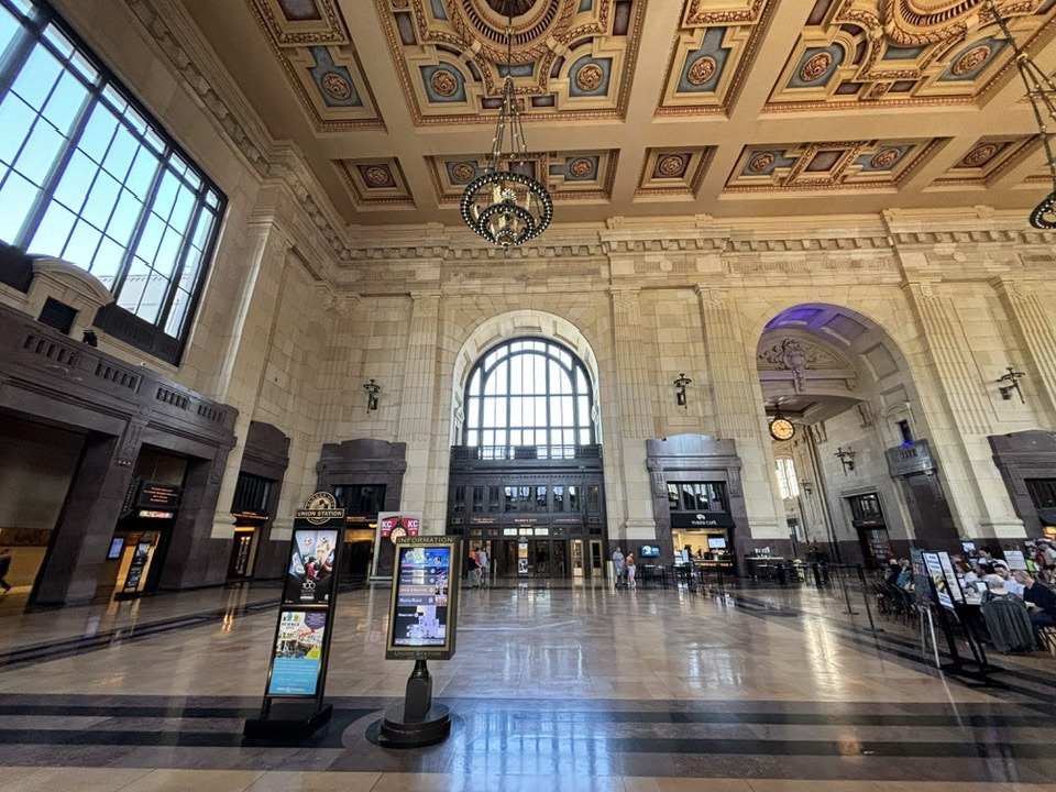 1914年に建造された100年以上の歴史のある駅舎です。歴史を感じさせるレトロな石造りの建物は、街のランドマークにもなっています。1999年の改修工事の後、2002年にアムトラックが再びこのユニオン駅を使うようになりました。また、サウスウエストチーフはシカゴとロサンゼルスの間を運行、このユニオン駅は重要な停留所となっています。また、ミズーリ・リバー・ランナーはカンザスシティからセントルイスまで運行します。駅舎には、プラネタリウム、映画館、鉄道模型体験、カフェやレストランが入っていて、電車に乗るためだけではなく、そこで何時間も楽しめます。夜の素晴らしいライトアップもお見逃しなく。