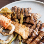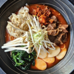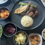 メニューは店名通りのモダン韓国料理です。キムチやビビンバ、キンパ、パジャン(韓国風お好み焼き)など。メインの韓国焼肉はカルビで42ドル、サムギョプサル30ドル(どちらも9オンス(約255g)です。週末のブランチタイムなら、ディムサム(飲茶 6ドル~)やキムチチャーハン(14ドル)、じゃじゃ麵(18ドル)など気軽に試せるメニューが並びますので、まずブランチに行ってみることをおすすめします。アメリカでコリアンレストランに行くと必ず沢山出てくる小鉢はこちらでもあり、もちろんお代わり無料なのでうれしいですね。