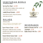 カフェという名前ですが、ダイナー(食堂)という感じのメニューが並びます。ブレックファーストにはワッフルやビスケット&グレイビーなどで、ランチのメニューであるハンバーガーやミートローフは$15と、割とリーゾナブル。ベジタリアンメニューやグルテンフリーのパンのオプションもあり、誰が出かけても楽しめそうです。ジャズが低く流れる落ち着いた雰囲気で居心地のよい空間です。