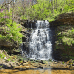 写真にある滝や川、橋などは丘の下部分のからアクセス出来ます。パーキングのすぐそばにピクニックテーブルなどもありますので、それほど歩かなくてもピクニック気分を味わえます。ほど近くに滝も見れますし、本流の川は流れが早そうですが、その支流の小さな沢のようなところでは小さな子ともたちが水に触れたりして遊んでいるのを見かけました。長歩きが苦手な小さなお子様がいても十分アウトドア気分を楽しめそうですね。そこからトレイルがいくつかの続いているので、ご自分・家族にあったトレイルにトライしてみるのもよいでしょう。