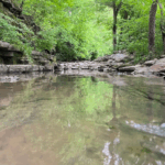 一方、丘の上のほうではぱーっと見晴らしがよいので、普段平地での暮らしが多いケンタッキー居住者には懐かしい日本の風景のような感じを味わえるかもしれません。丘の上にも広場の周囲をまわるような舗装されたトレイルがあるので、こちらも初心者向け・家族向けと言えるかもしれません。こちら丘の上では、アーチェリー場や大きめのピクニックテーブルが並ぶ小屋などもあります。