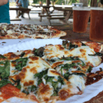 ミゲールズは、Sladeというレキシントン中心部から1Hちょっと南東方向へドライブするとある小さな町にあります。ここはロッククライマーの聖地のひとつであるレッドりバーゴージというところへ向かう途中、クライマーが必ずと言っていいほど立ち寄る場所です。コアなクライマーは豪華なホテルになど泊まりません。寝袋とテント持参でキャンプというのがデフォルト。ここミゲールズの敷地内にはテントを張れる場所のレントもあるので、ここで寝泊まりして数日クライミング三昧の日々を過ごす、というのがコアクライマーのスタイルです。こちらのピザレストランはショップも兼ねていて、クライミングに必要なグッズやミゲールズのロゴ(ミゲールさんはお店を始めた方です)入りシャツやフーディなどもあります。もちろんクライミングしない人でも、レストランやショップの利用は可能です。ピザ(2切れ6ドル~)は焼きたてフレッシュで美味しいので、クライミングしない人でも大いにエンジョイできます。ピザ以外にもサラダ(3ドル~)やサンドイッチ(9ドル~)などもあります。またクライマーの糖分補給を兼ねたAle-8やクラフトビアも各種取り揃えています。レッドリバーゴージやナチュラルブリッジパークをハイキング、そしてミゲールズに寄ってクライマー気分でピザを食べるのも楽しいと思います。