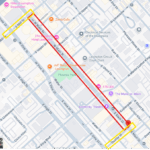 (こちらの地図はGoogleMapにはリンクしていません。赤囲みの通りでパレートは行われます。)