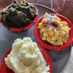 サイドメニューのじっくり煮込まれたカラードグリーンやほんのり甘いコーンブレッド、子供も大好きなマック&チーズなどは、どれも$2.79。