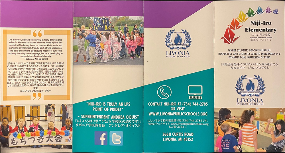 リボニアにある全米に4校しかない、日本語と英語のバイリンガル教育の学校(K-G6)。