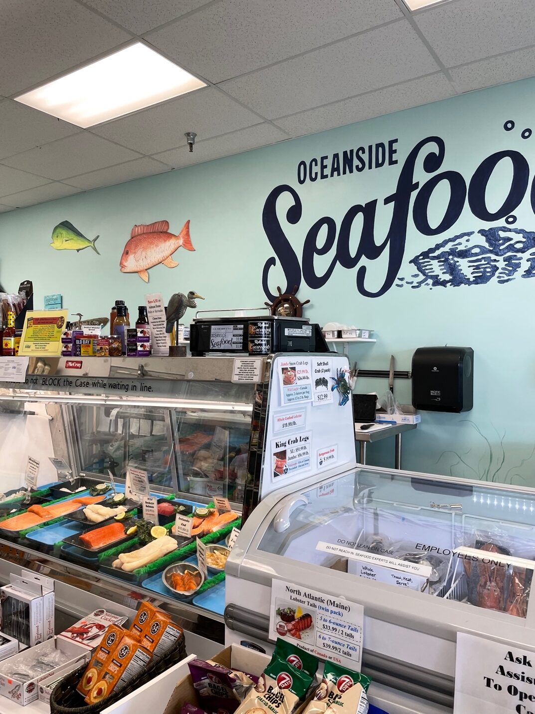 1980年からやっている魚専門店。刺身グレードの魚がブロックで売られています。マグロ、サケ、ホタテ、はまちなどが日本のお寿司屋さんのカウンターのようにガラスケースに冷蔵で並んでいます。マグロ1ポンド16ドル前後です(2022年)。質も味も申し分ありません。買い物にはクーラーボックスを持っていくといいでしょう。歴史のあるファミリービジネスの魚屋さんなので、専門的な知識はいっぱいあります。なんでも聞いてみてください。また「モービルシーフードマーケット」という小さなトラックでの移動販売があり、ウォルドレイク、アナーバー、他の町にもやってきます。スケジュールをサイトでチェックしてみてください。https://oceansideseafood.market/pages/mobile-seafood-market