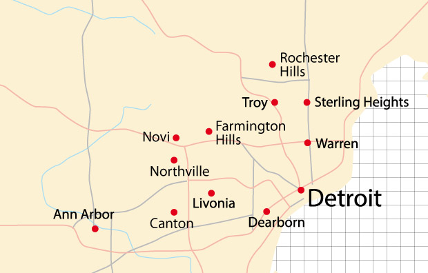 ロウアー半島の南東部にあり、デトロイトから西に8マイル、アナーバーの境界から東に8マイルのところに位置します。デトロイトが近いので自動車関連や製造業の会社がたくさんあります。「I K E A」があり、日本人はまだ少ないですが、増加の傾向にある街です。近年、住宅やモールの建設ラッシュを迎えています。
