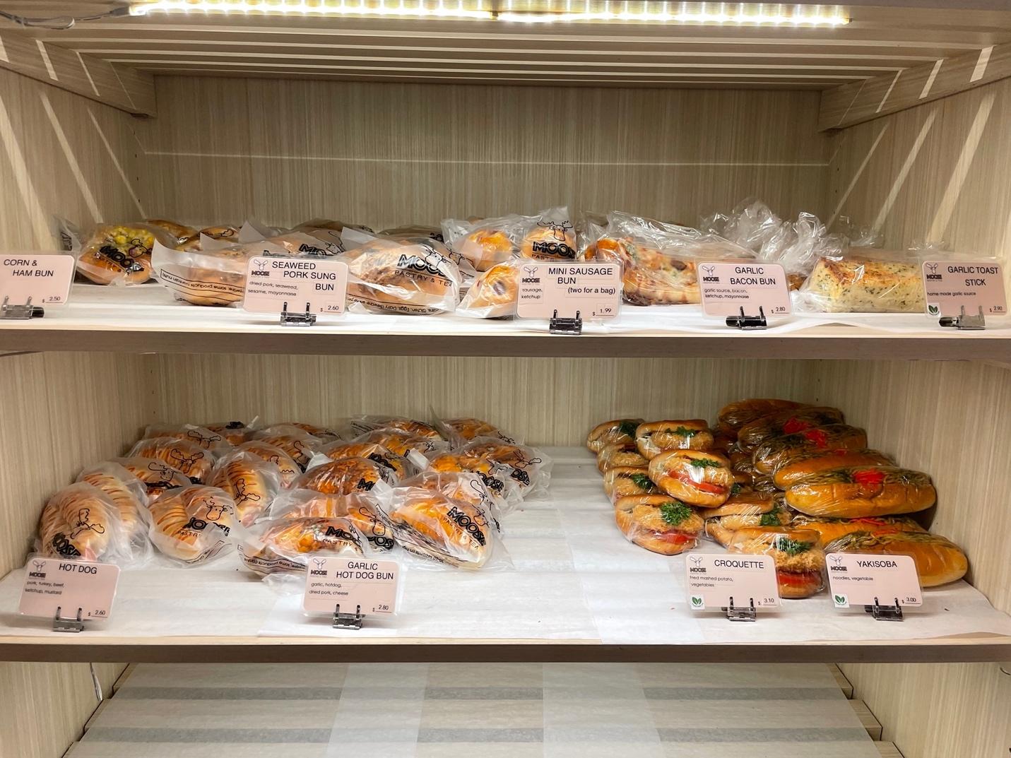 台湾出身の料理長率いるパンとケーキのお店。ハムロール、コーンマヨ、こし餡パン、クリームパン、デニッシュ系、あんドーナッツなどのスイートなパンから、ホットドッグやソーセージ、コロッケや焼きそばパンなどの調理系パンまで、種類豊富なパンが個包装された状態で並んでいます。ほとんどが2ドル台。食パンもあります。台湾から材料を取り寄せているバブルティもたくさん揃っていて、ドリンクメニューは日本語で書かれています。看板のムースパンはムースの形をかたどったブルーベリークリームとチーズのパンです。イートインできます。