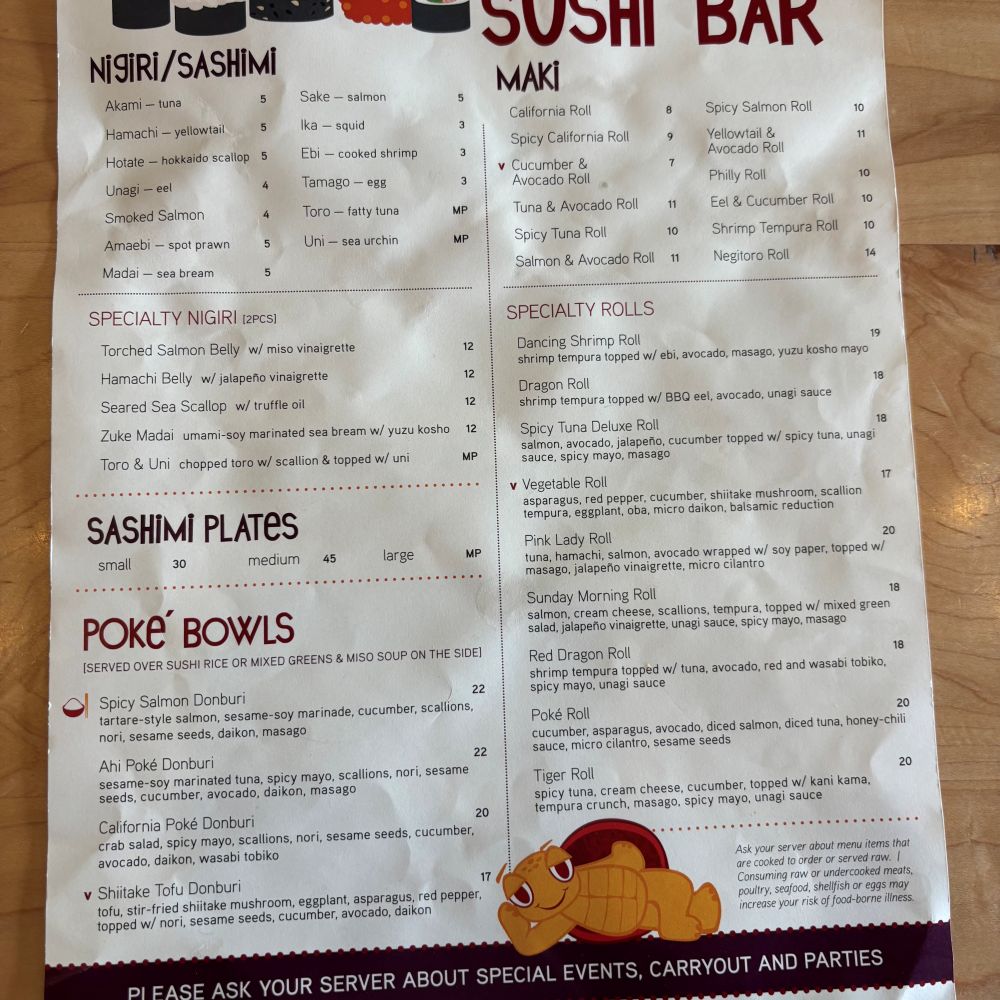 アナーバーダウンタウンにあるラーメン屋さん。日本のラーメンにかなり近いです。ラーメン以外のメニューも豊富で、一品もの、丼ぶり、お寿司も美味しいです。週末は並ぶことも多いので、時間に余裕をもってお出かけください。ダウンタウンにあるので、お店で名前を伝えて待ち時間に近くの散策もありです。専用駐車場がないので路上駐車(メーター付き、アナーバーダウンタウンは日曜日はフリーのところが多いです。要確認)か、パーキングをご利用ください。
