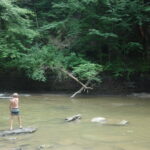 水は川なので常に流れており、清潔感があり安心感も◎。下流側に進めば流れは穏やかになるので、小さなお子様でも足をつけて楽しめます。しかも木々に囲まれているため木陰が多くて涼しく、でも川自体はしっかり日が当たって水が温かいのもポイント。気温の高い夏でも快適に過ごせるのが魅力です。