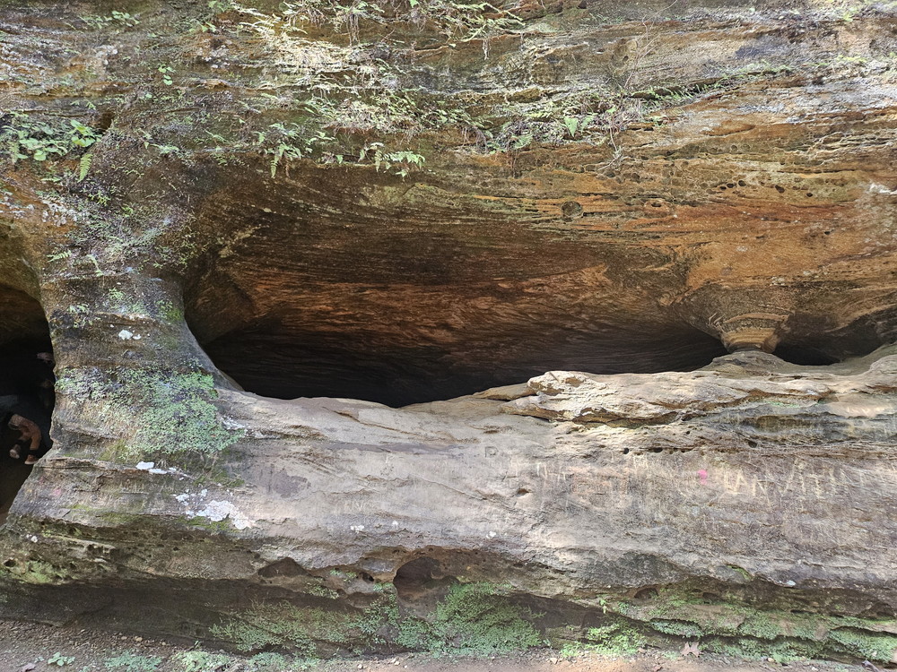 その後は「Ash Cave」にも立ち寄りました。巨大な岩壁に囲まれた空間はまさに圧巻で、まるで天然のステージのよう。滝の水は少なめでしたが、ほかの子どもたちが足を水に浸して遊んでいる様子も見られました。タオルを持っていくと安心です。