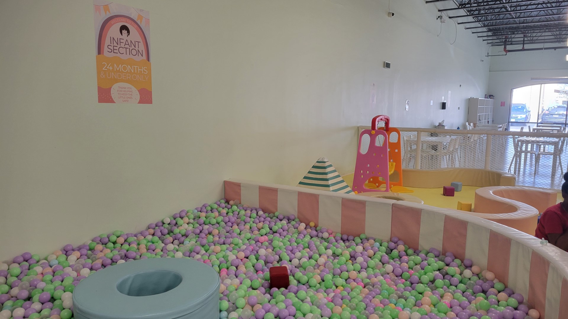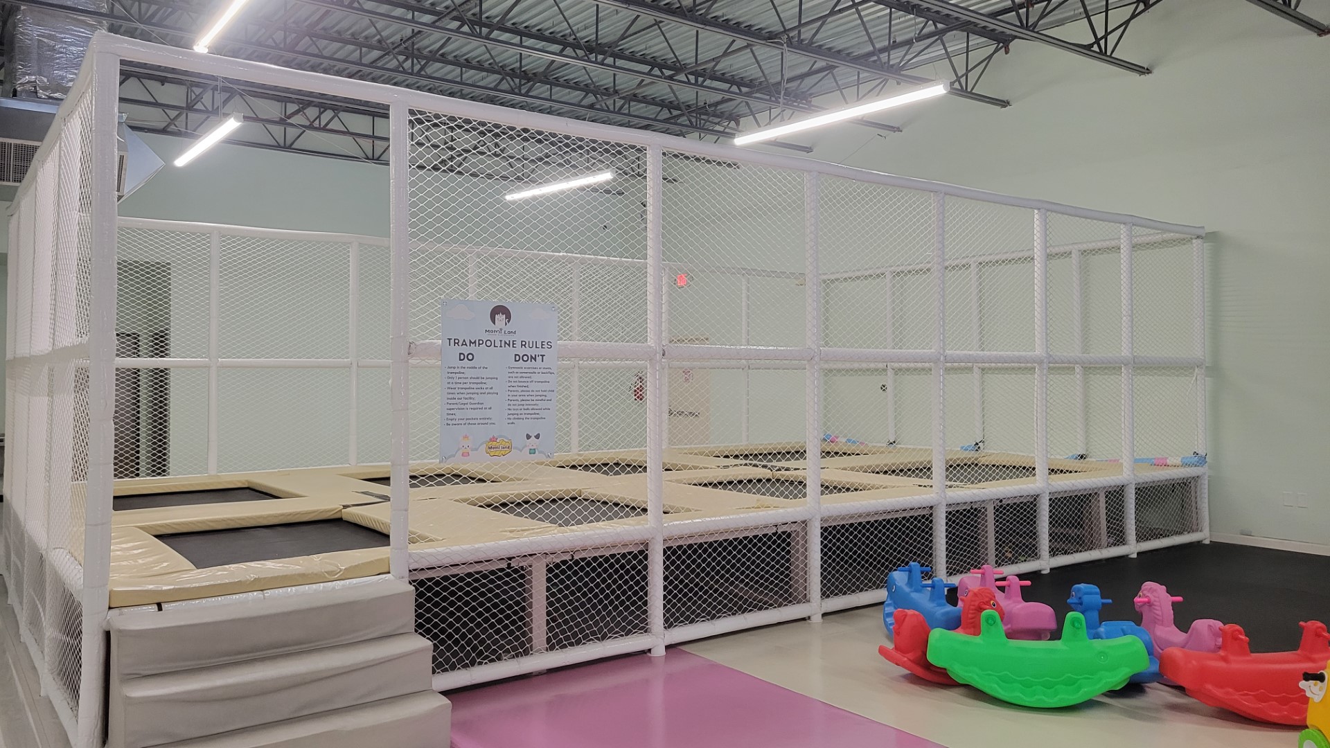 ボールプールに飽きたら滑り台をして、キッチンでおままごとをした後はバイクにのって遊戯場内を走り回りて仕上げにトランポリンでひたすらジャンプ。