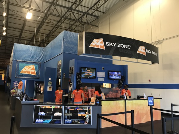 入り口で事前にどのくらいの時間利用するか申し込みます。時間が来ると基本的に自己申請でトランポリンを使うのを終了する。事前にオンラインで予約も可能。日によっては混雑するとすぐには利用出来ないようなので、オンラインで時間予約もできるようになっています。スナックやドリンクも販売しています。