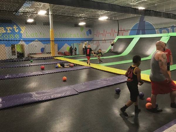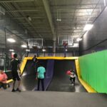 普通にトランポリンで飛ぶところ、ドッジボールができるところ、向かい側に沢山スポンジが入っておりバック転などの練習ができるところなど。お誕生日パーティーで利用時にはケーキを食べたりできるスペースも用意されています。