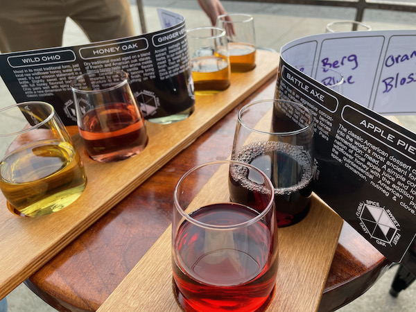 蜂蜜と水を発酵させた醸造酒がミード。一番近いのは葡萄で作るワインかしら。蜂蜜と聞くと「うっ甘そう」と思うけれど、それは誤解。さまざまな種類テーストのミードがあるのでフライトでテースティングを楽しんでお気に入りを見つけてみて下さい。ライブバンドやミードの製造過程やテースティングをするツアーもあります。