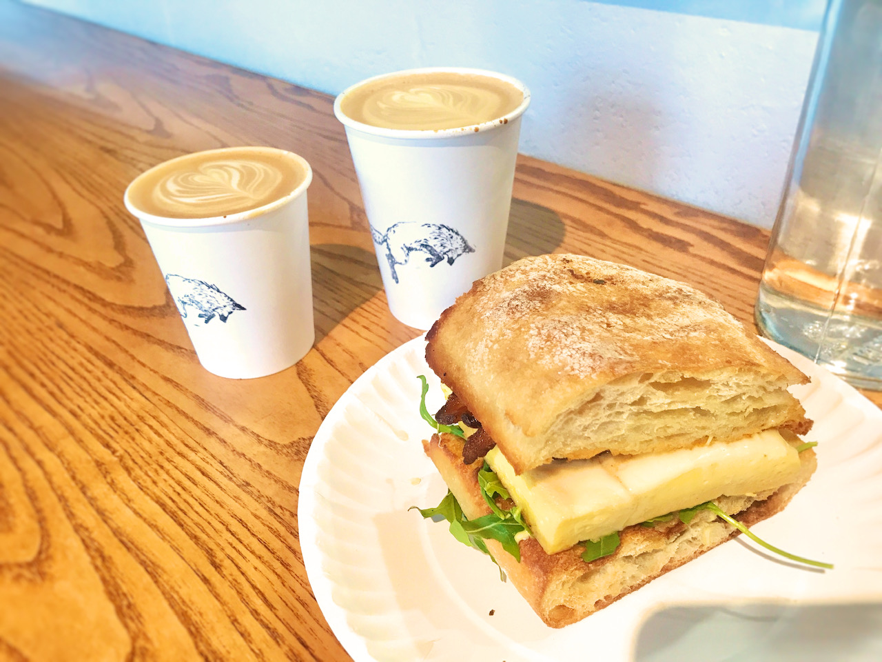 「お客さん皆が注文してる?!」と思うくらい大人気のエッグサンドイッチは厚焼き玉子の様な卵焼きが、トーストされた美味しいパンに挟まっていて、こちらも絶品でした。