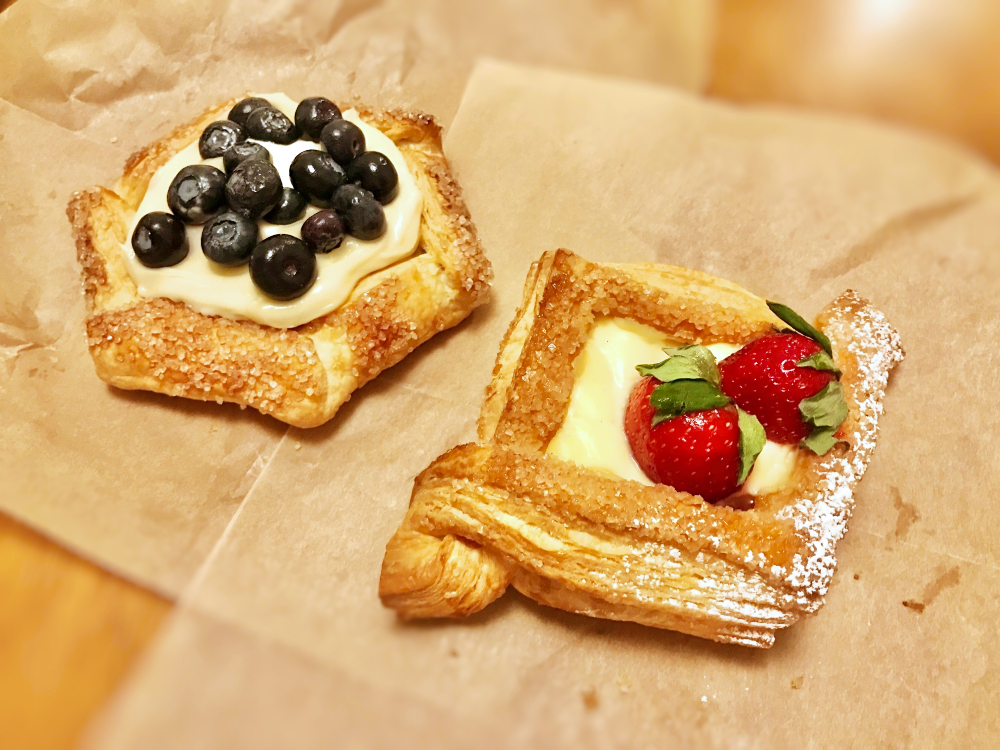 カウンターに置いてあるデニッシュ系は人気な様で、11時には完売。デニッシュ生地はサクサクで、カスタードは甘すぎず、日本人の口にも合うお味でした♪(写真・下)